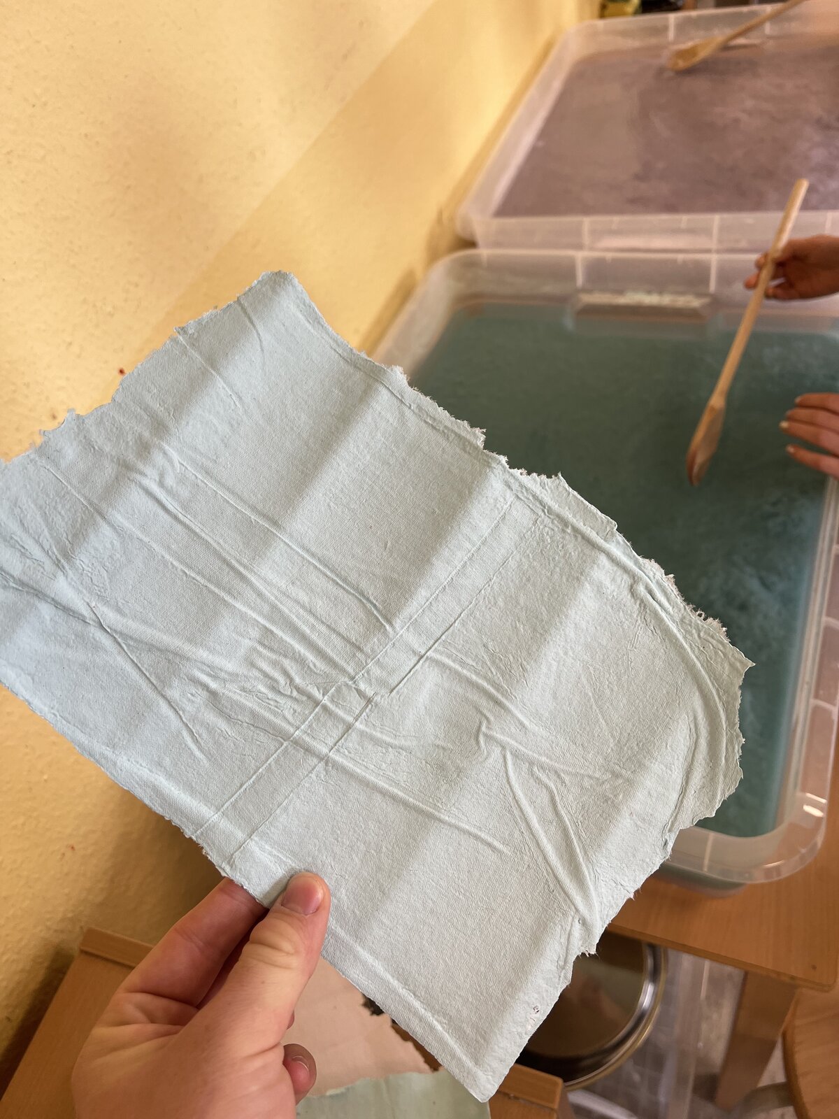 Im Mittelpunkt stand die eigene Herstellung von Papier – aus alten Zeichnungen, benutztem Papier oder Karton.