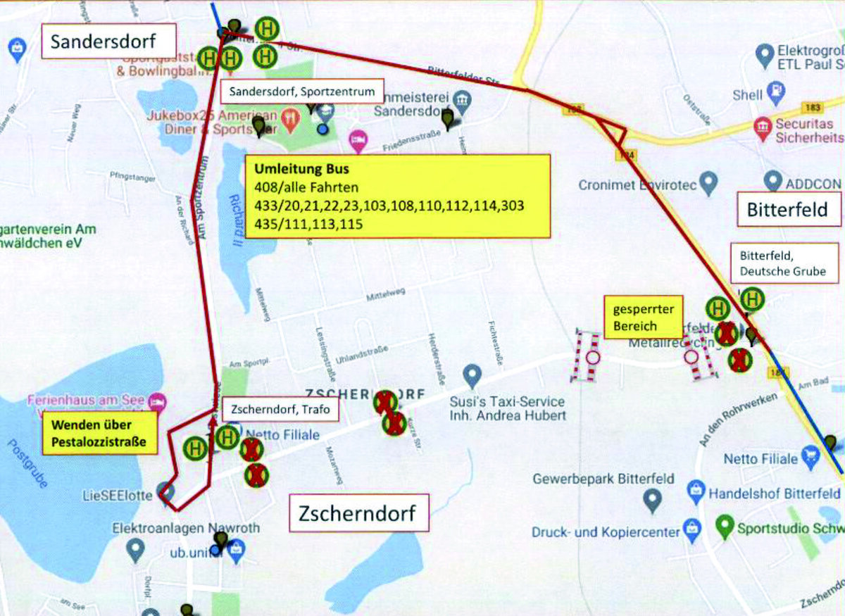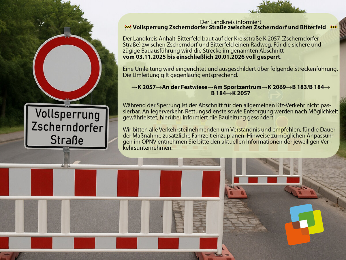 Sperrungen, die im Zuständigkeitsbereich der Stadt Sandersdorf-Brehna liegen