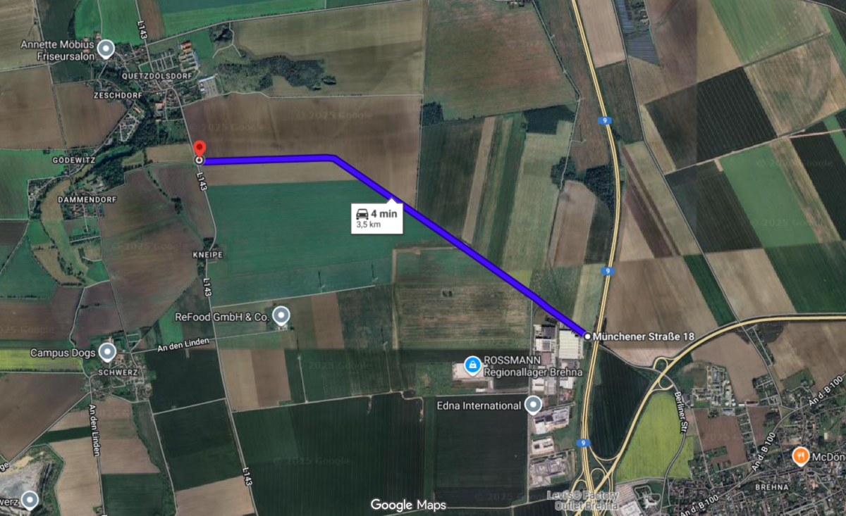 • Verbindungsstraße zwischen dem Industriegebiet Brehna, der Münchener Straße und Quetzdölsdorf (siehe Anlage)