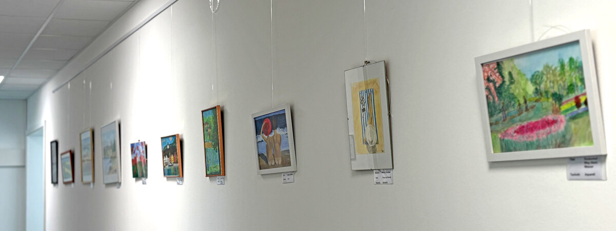 Ich mache beim Seniorensport im MGT mit, und dort habe ich gehört, dass im Haus Bilder ausgestellt werden dürfen – dafür wurden sogar neue Leisten angebracht. Also bin ich zur zuständigen Mitarbeiterin gegangen und habe gefragt. Sie meinte: „Kennen Sie denn jemanden?“ Darauf sagte ich: „Ja, mich!“ Zwei Freundinnen aus der Runde stimmten sofort zu – so ist das Ganze entstanden.