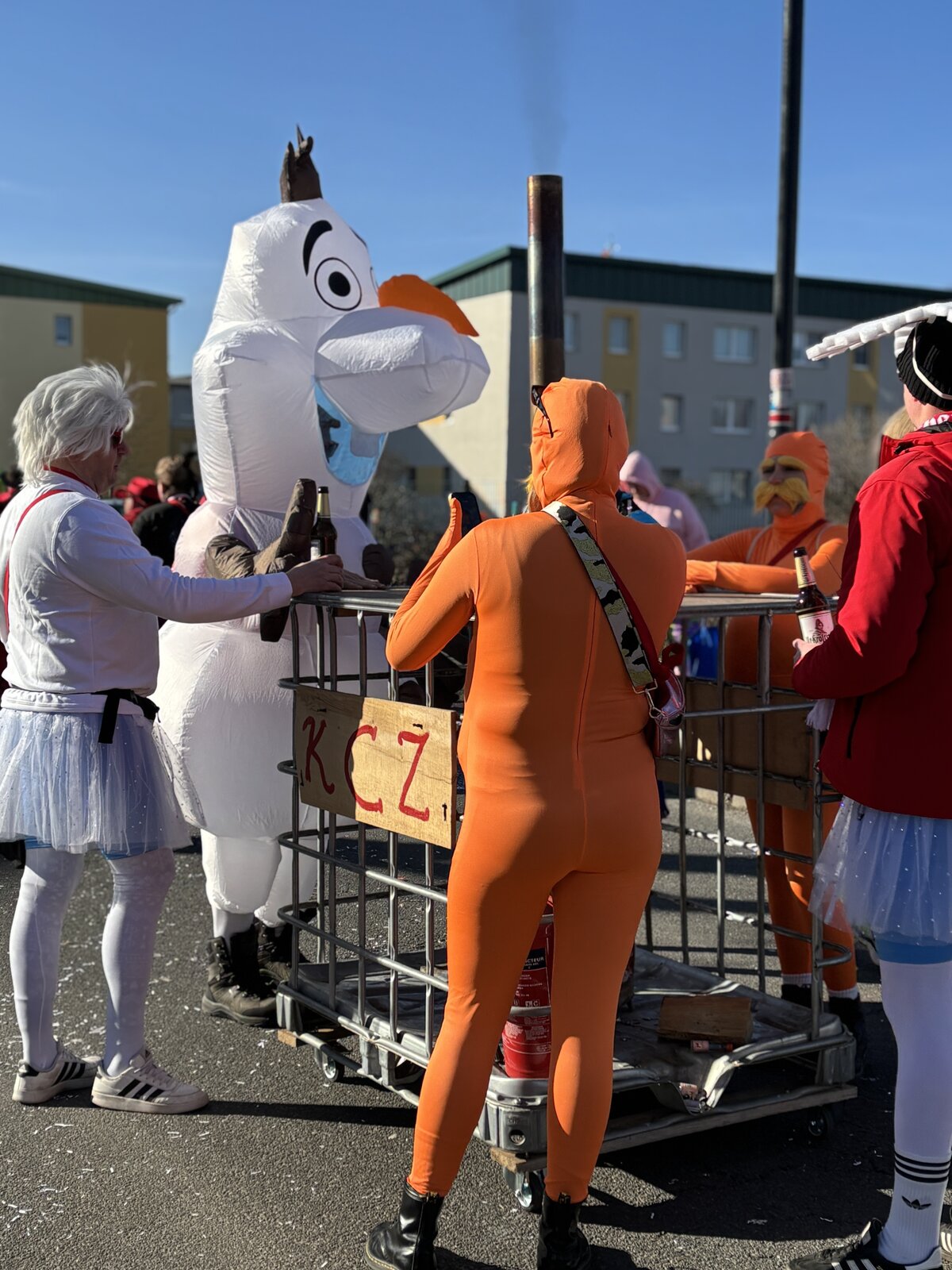 Bei bestem Wetter machten sich nach zweijähriger Pause unsere fünf Karnevalsvereine mit ihren bunten Kostümen und ihren großen Umzugswagen auf den Weg vom Sportzentrum durch die Stadt. Ihnen folgten viele Freunde, Karnevalsbegeisterte und Kostümvernarrte. Das Publikum säumte die Hauptstraße über die Straße der Neuen Zeit bis hin zum Rathaus. Am Kreisel gab es traditionell Getränke und Leckereien sowie Musik von den Uhu`s. Die heranfahrenden Wagen wurden dann von unserem Moderatorenteam Heike und Hubi vorgestellt und ordentlich begrüßt. Kamelle über Kamelle gab es nicht nur für die Kinder!