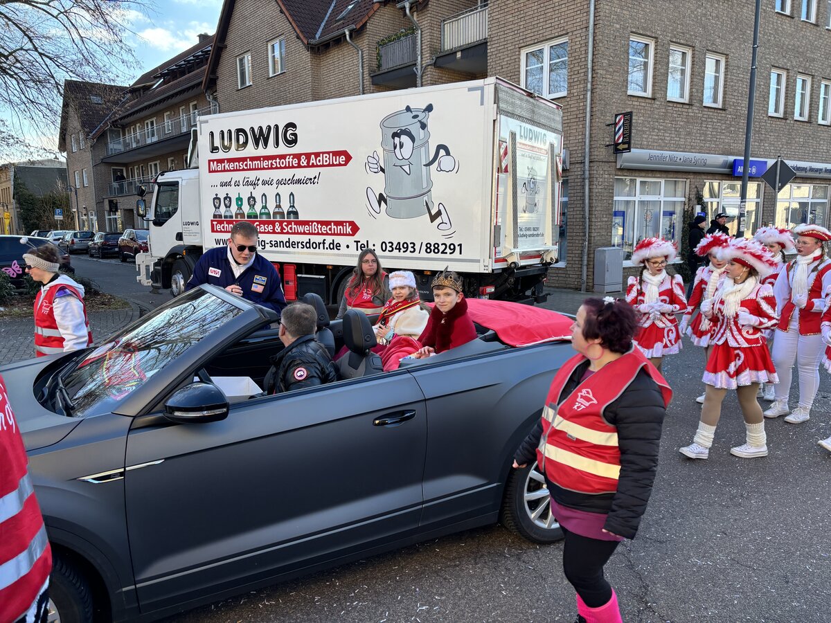 - SKV e. V. mit Vereinswagen, Kinderprinzenpaar, Prinzenpaar und Männerballett