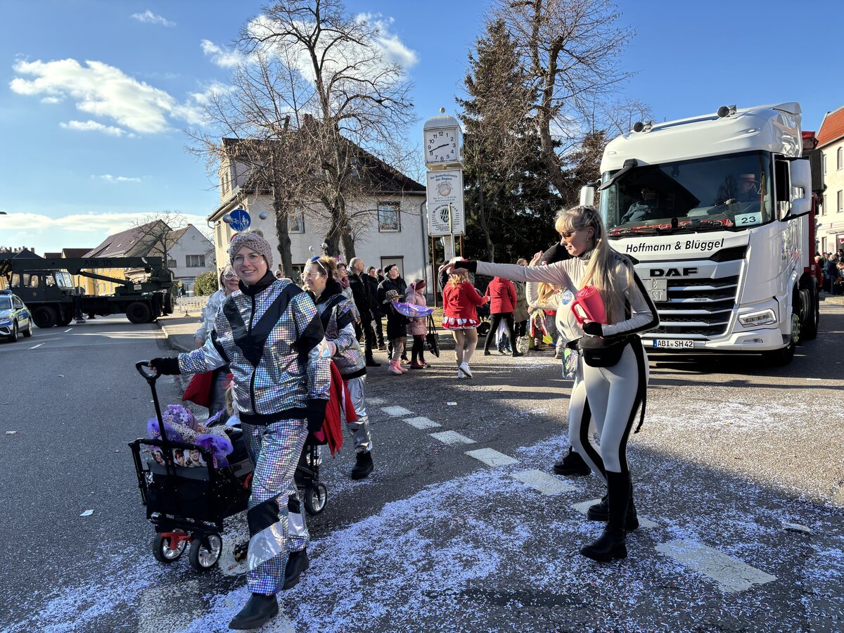 Die Straßen erfüllte laute Partymusik, während Funkenmariechen ihre akrobatischen Fähigkeiten zeigten und verschiedene Prinzenpaare den jubelnden Zuschauern zuwinkten. Am Rathaus verteilte Bürgermeisterin Steffi Syska Getränke an die wartenden Menschen, während auch Landrat Andy Grabner und Bürgermeister Matthias Egert von Zörbig sich den Feierlichkeiten anschlossen.