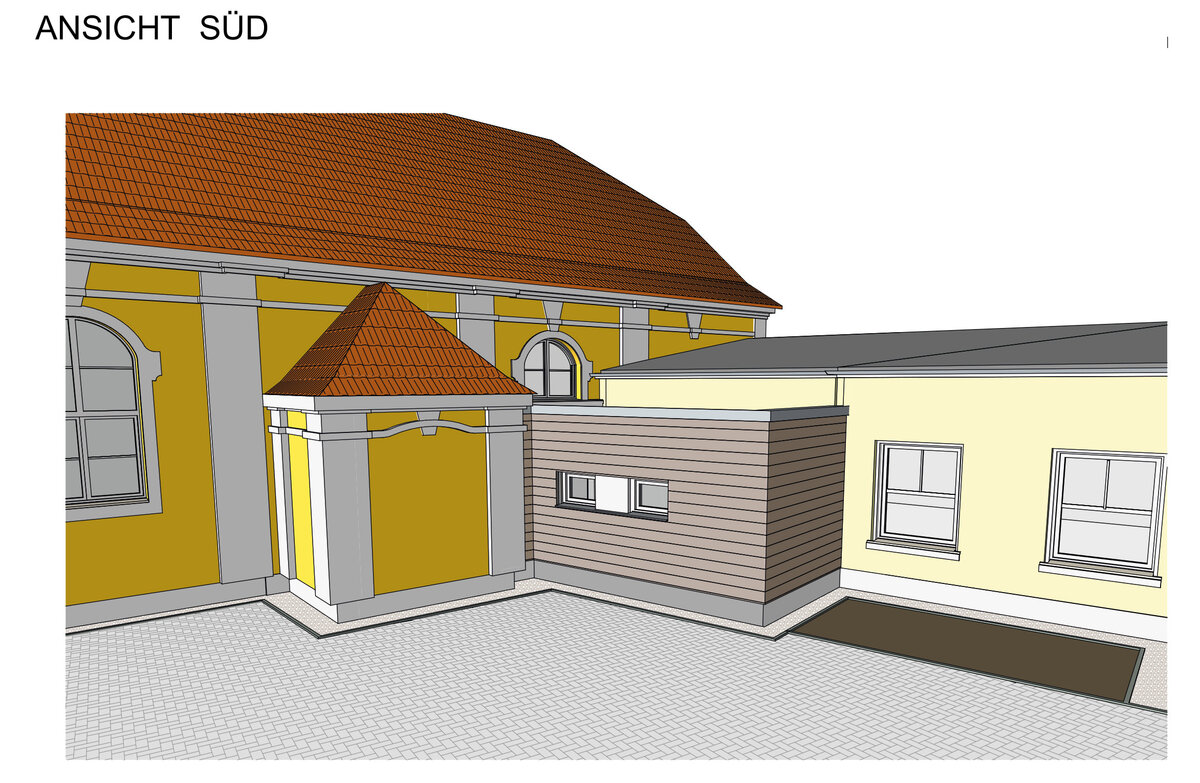 Erweiterung der bestehenden, denkmalgeschützten Turnhalle in 06792 Sandersdorf-Brehna, OT Zscherndorf um einen Sanitärtrakt bestehend aus zwei Duschen.