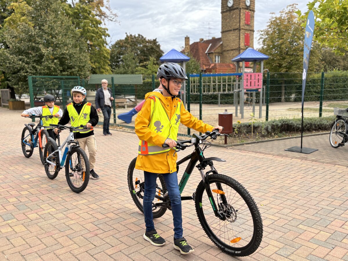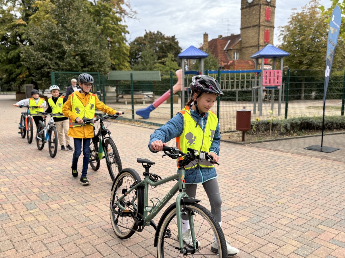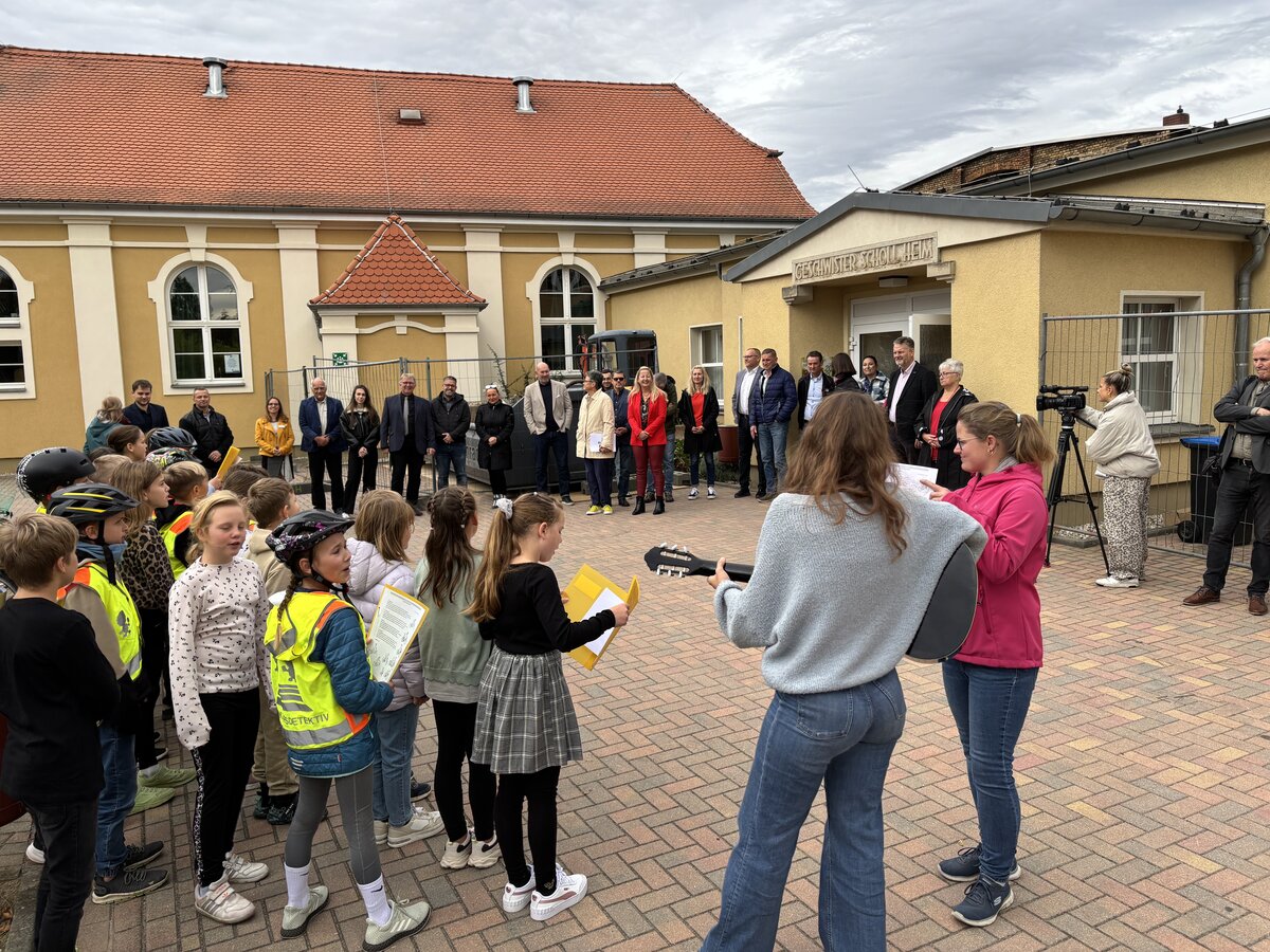 Für einen besonderen Abschluss sorgten die Kinder der Grundschule Zscherndorf. Sie trugen – mit Gitarrenbegleitung – das Lied „Mein Fahrrad“ von den Prinzen vor, das augenzwinkernd vielleicht auch eine kleine Kritik an den „Politikerautos“ enthält. Anschließend zeigten die Schülerinnen und Schüler, was sie in ihrer Fahrradprüfung gelernt hatten.