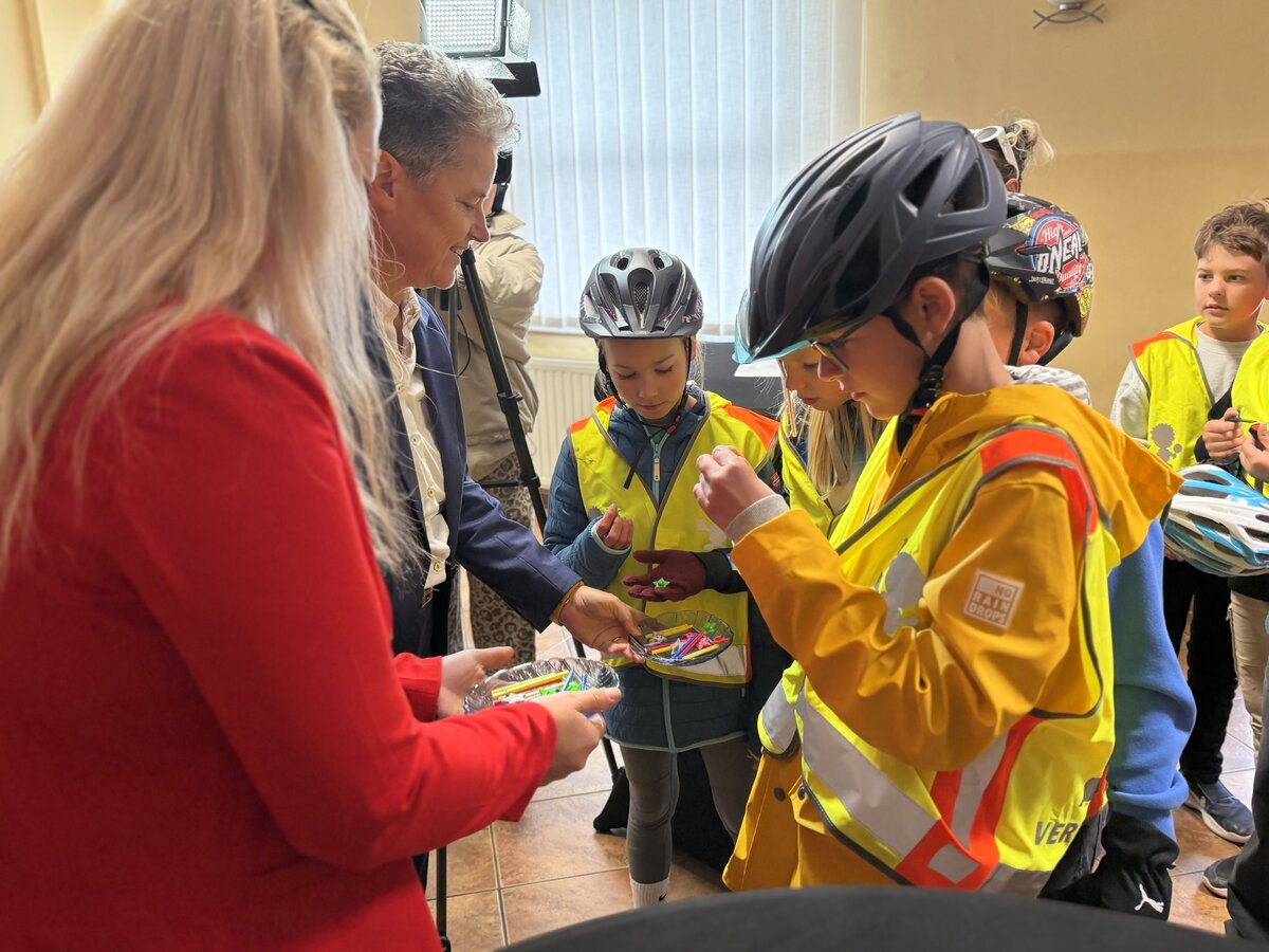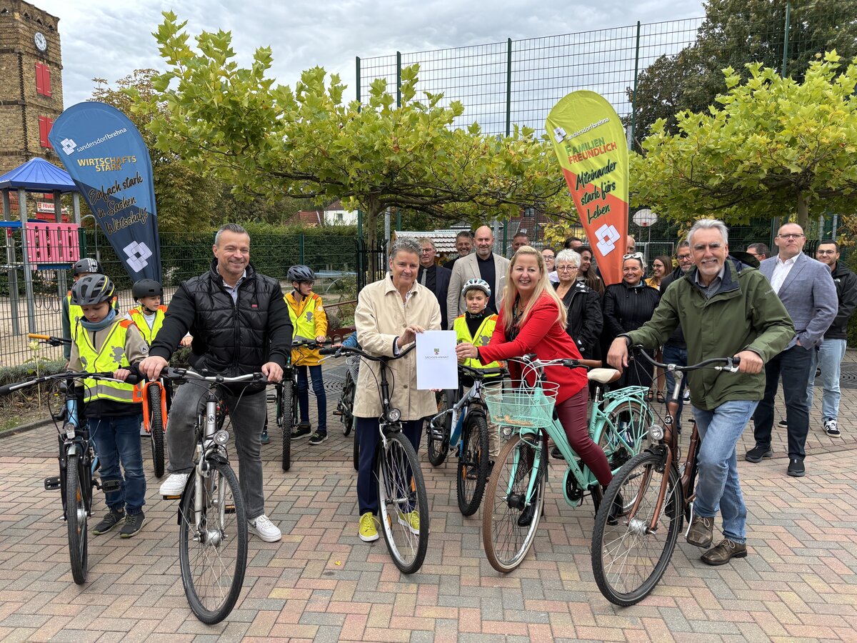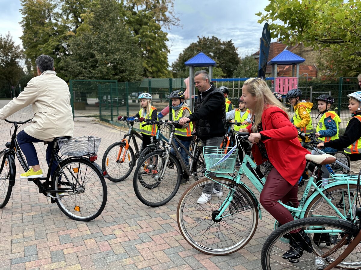 Für einen besonderen Abschluss sorgten die Kinder der Grundschule Zscherndorf. Sie trugen – mit Gitarrenbegleitung – das Lied „Mein Fahrrad“ von den Prinzen vor, das augenzwinkernd vielleicht auch eine kleine Kritik an den „Politikerautos“ enthält. Anschließend zeigten die Schülerinnen und Schüler, was sie in ihrer Fahrradprüfung gelernt hatten.