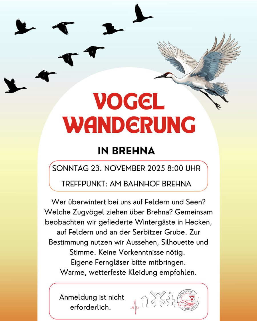 Lasst uns gemeinsam den Blick in den Himmel, die Büsche und Gewässer richten um zu schauen, welche Vögel unsere Region nutzen um zu überwintern oder hier eine Pause auf ihren langen Wegen einzulegen.