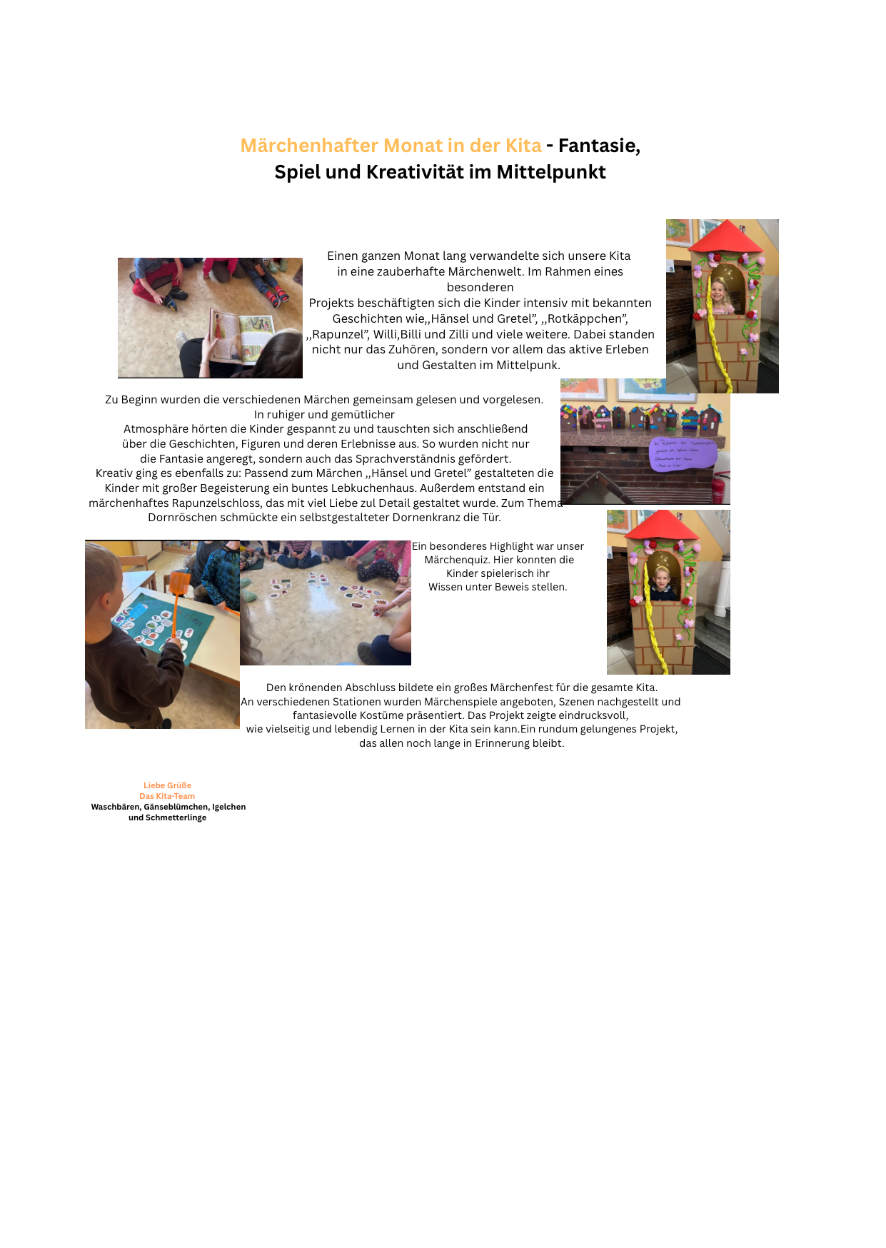 Die Kinder kamen in bunten Kostümen und verwandelten sich in Prinzessinnen, Superhelden, Tiere und viele andere fantasievolle Figuren. Bei einer ausgelassenen Kinderdisco wurde gemeinsam getanzt, gelacht und gefeiert. Ein rundum gelungener Tag voller Freude und strahlender Kinderaugen!